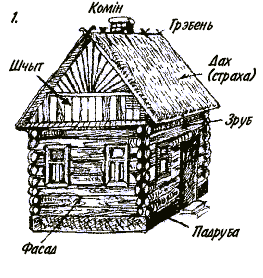 Калі дакладней прыгледзецца, то можна уявіць, што пярэдняя частка хаты (фасад) - твар, шчыт - лоб, вочы - вокны. (Мал. 1)
